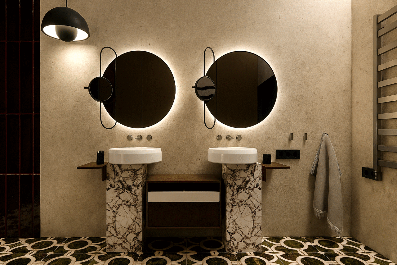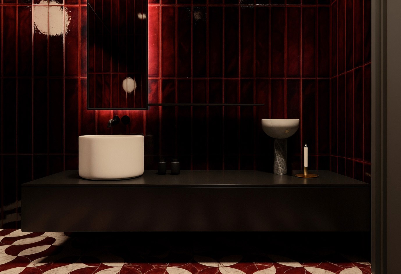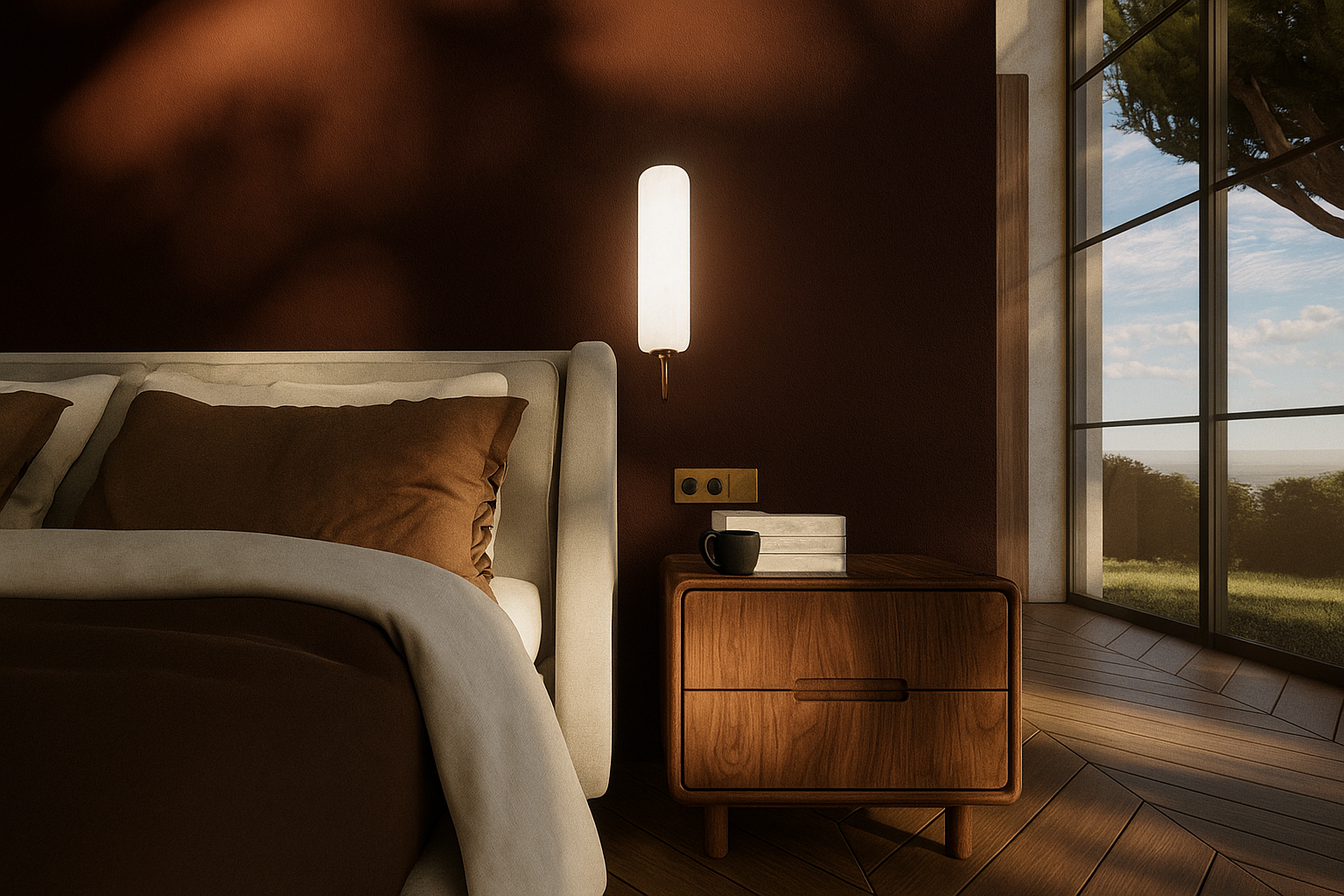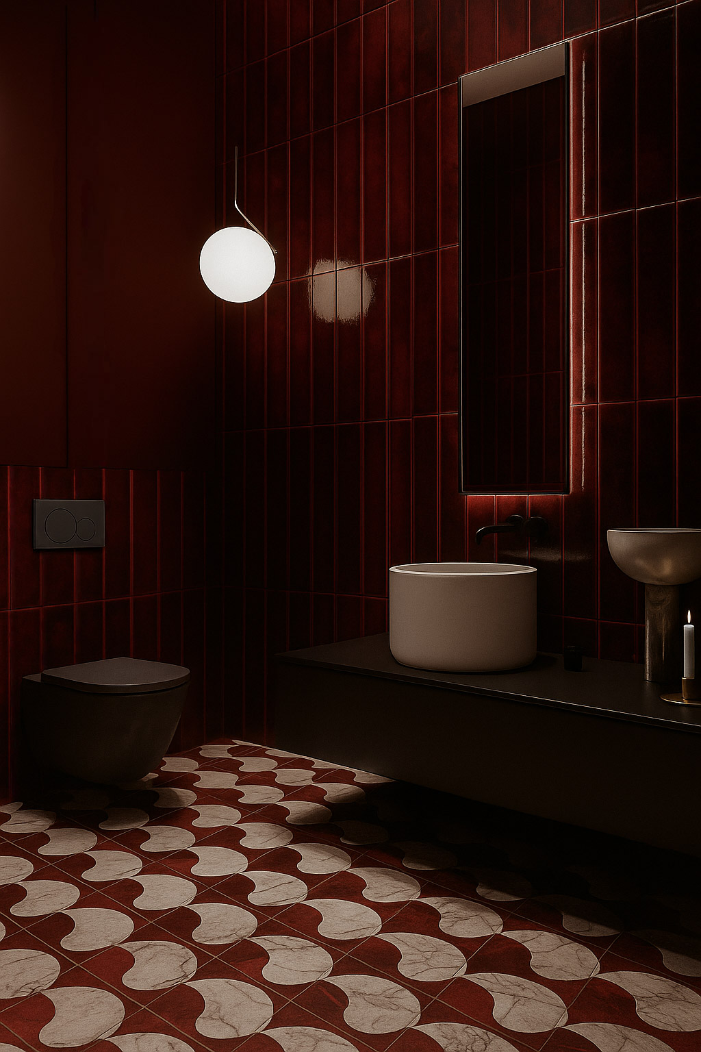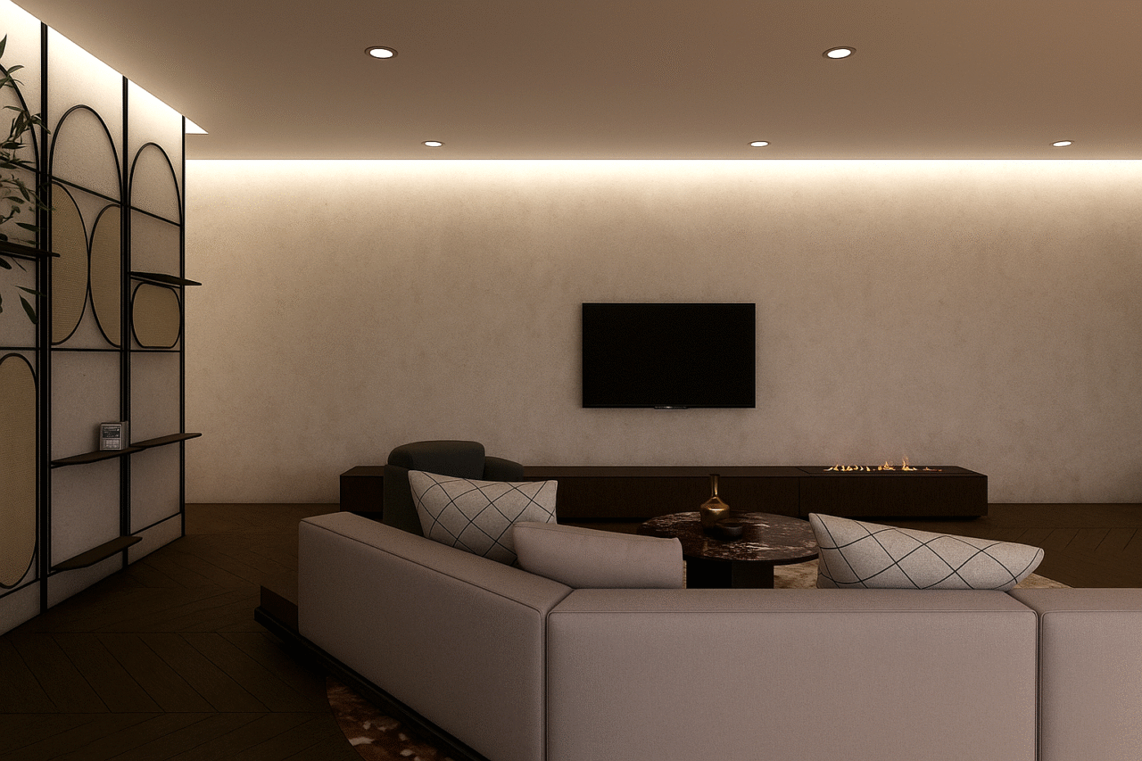 Jaukus individualaus namo projektas. Šiame interjere dominuoja tamsiai raudonos spalvos motyvai, kurie kuria šiltą, itališko stiliaus atmosferą. Erdvei suteikiamas subtilus prabangos pojūtis, o spalvų gylis harmoningai dera su natūraliomis medžiagomis ir minkšta šviesa.